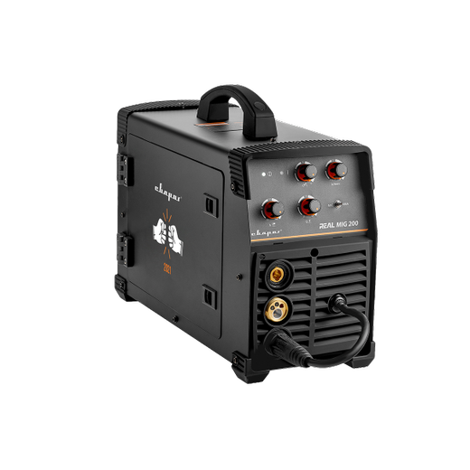 REAL MIG 200 BLACK (N24002N)— инверторный сварочный аппарат для полуавтоматической сварки в среде защитных газов (MIG/MAG), сварки порошковой проволокой (FCAW), а также ручной дуговой сварки покрытым электродом (ММА). Инвертор выпущен в уникальном дизайне и в ограниченном количестве. Отличается от стандартной модели REAL MIG 200 (N24002N) стильным дизайном, расширенной комплектацией.