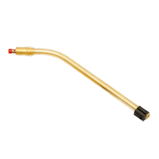 Имеет изогнутую форму, что обеспечивает более удобное использование во время работы. Гусак нужен для того, чтобы закрепить на горелке держатель наконечника и газораспределитель, а также для подачи в зону сварки электрического тока и защитного газа. Крепится к рукоятке горелки с помощью резьбового соединения.