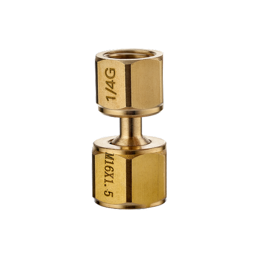 Переходник 1/4 (внут)—М16×1.5 (внут) предназначен для перехода с резьбового соединения 1/4G (внут) на резьбовое соединение М16×1.5 (внут). Материал— латунь.