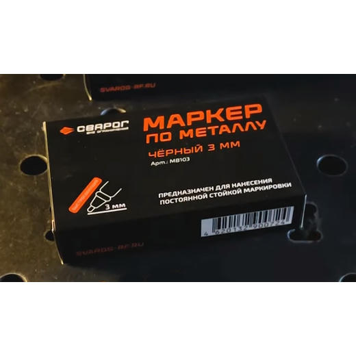 Маркер сварщика предназначен для нанесения нестираемой, водостойкой и атмосфероустойчивой маркировки на любых материалах. В маркере используется быстросохнущая нитрокраска. Толщина наносимой линии 3 мм.
