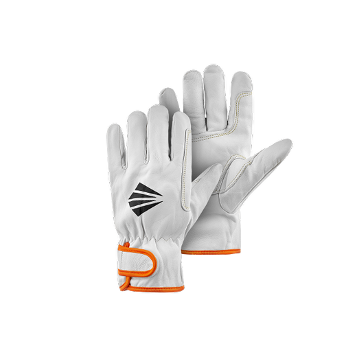 Рабочие перчатки из натуральной кожи имеют фиксатор на манжете, что обеспечивает лучшую посадку на руке. Ладонь дополнительно укреплена износостойкой нашивкой. Сфера использования: для работ, связанных с высокими истирающими, механическими нагрузками.