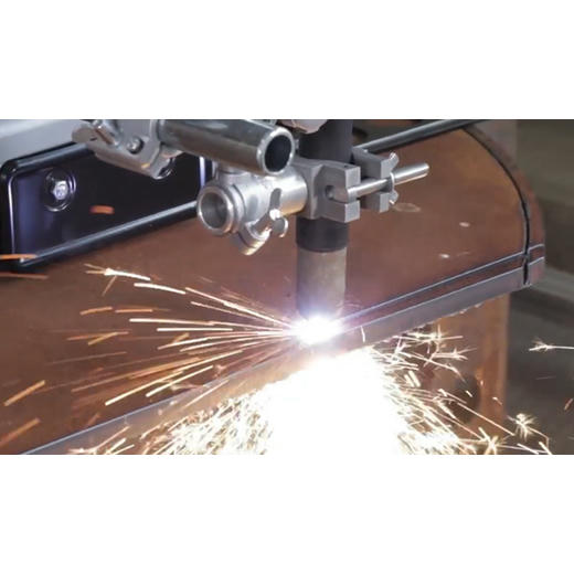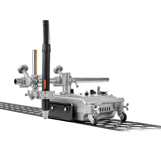 Работа выполняется плазменным резаком, установленным в держателе на самоходной тележке. Зажим крепления резака для машин термической резки имеет реечный механизм, который позволяет перемещать резак, регулировать его высоту установки над поверхностью металла, а также устанавливать угол наклона резака в пределах ±45°. Для фиксации резака предусмотрены винты.