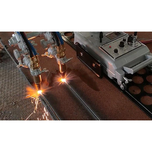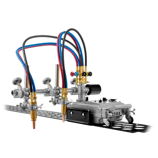 Резка выполняется двумя газокислородными резаками, установленными в держателях на самоходной тележке. Зажим крепления резаков для машин термической резки имеет реечный механизм, который позволяет перемещать резаки, регулировать их высоту установки над поверхностью металла, а также устанавливать угол наклона резаков в пределах ±45°. Положение резаков фиксируется винтами.